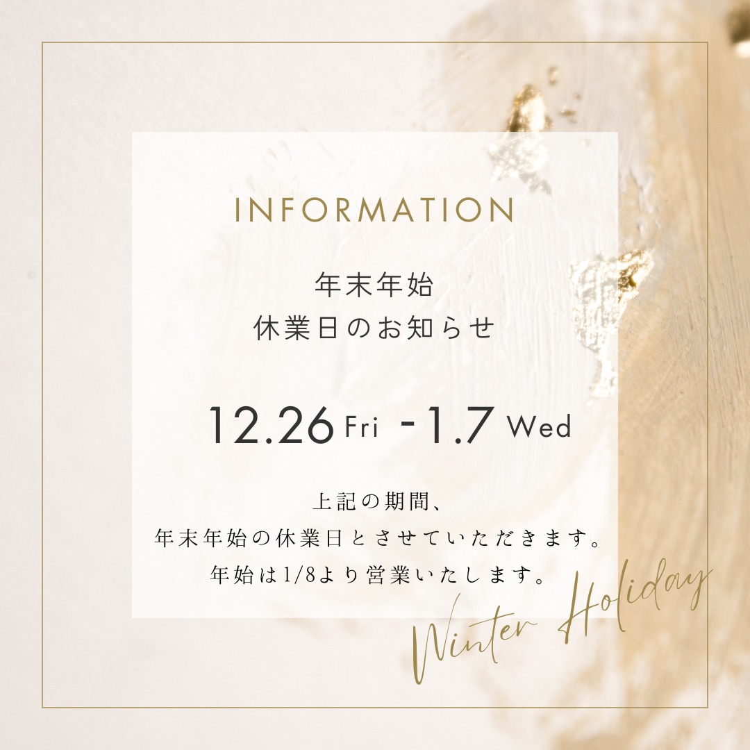 年末年始休業期間12/26(金) ~ 1/8(火) ※年始は1/8(木)11時より営業