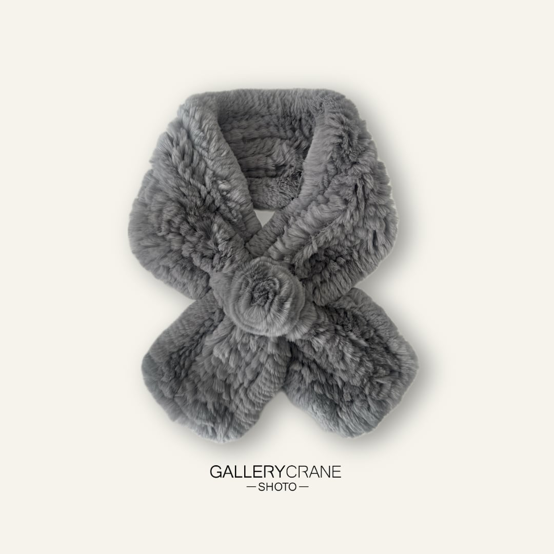 ※レッキスヤーンとは、レッキスラビット(最上級とされる品種のウサギ)の毛皮をテープ状に加工し、ネットなどに編み込んだ毛糸(ヤーン)状の素材を指し、非常に柔らかく密度の高いふわふわとした肌触りと、毛抜けが少ないのが特徴で、マフラーやスヌード、帽子などの防寒具に広く用いられます。